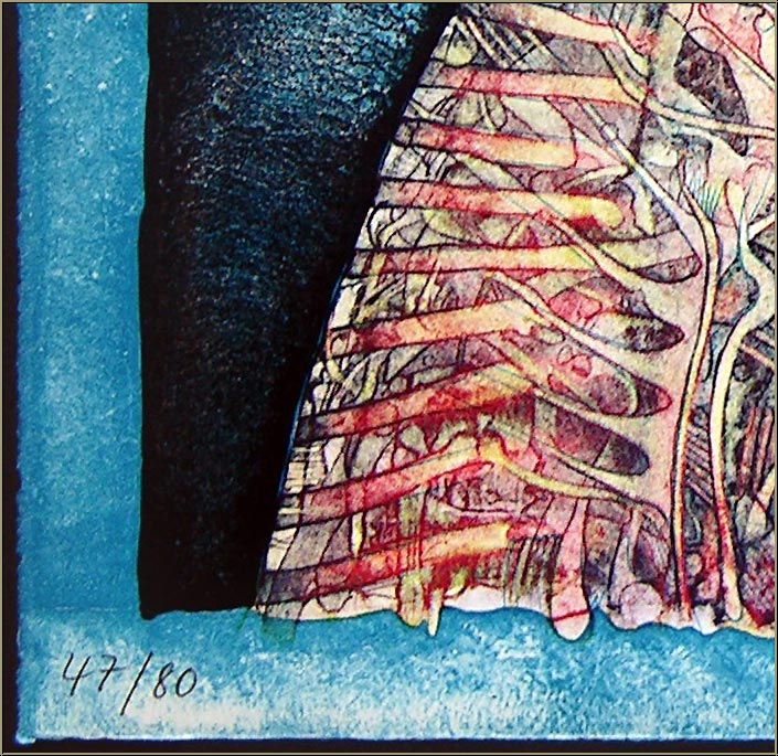 Détails :« Zeigt die Zähne » (Montrer les dents) - 1971 Lithographie originale en couleurs de l'artiste allemand, qui était reconnu pour ses « images des rayons X"