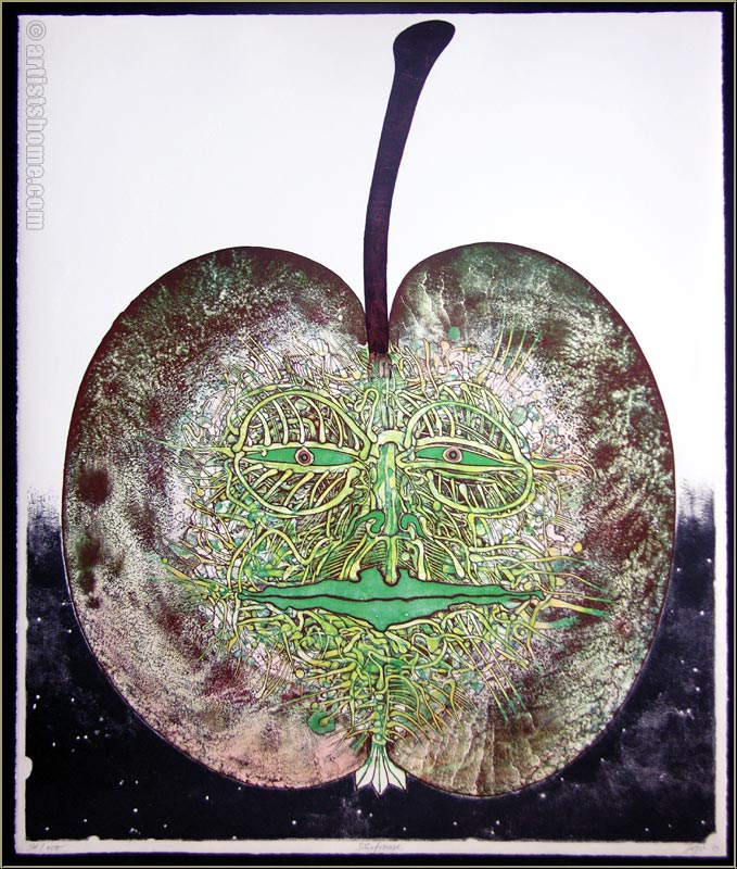 Détails :« Schafsnase » (variété de pomme) - 1973 Lithographie originale en couleurs de l'artiste allemand, qui était reconnu pour ses « images des rayons X »