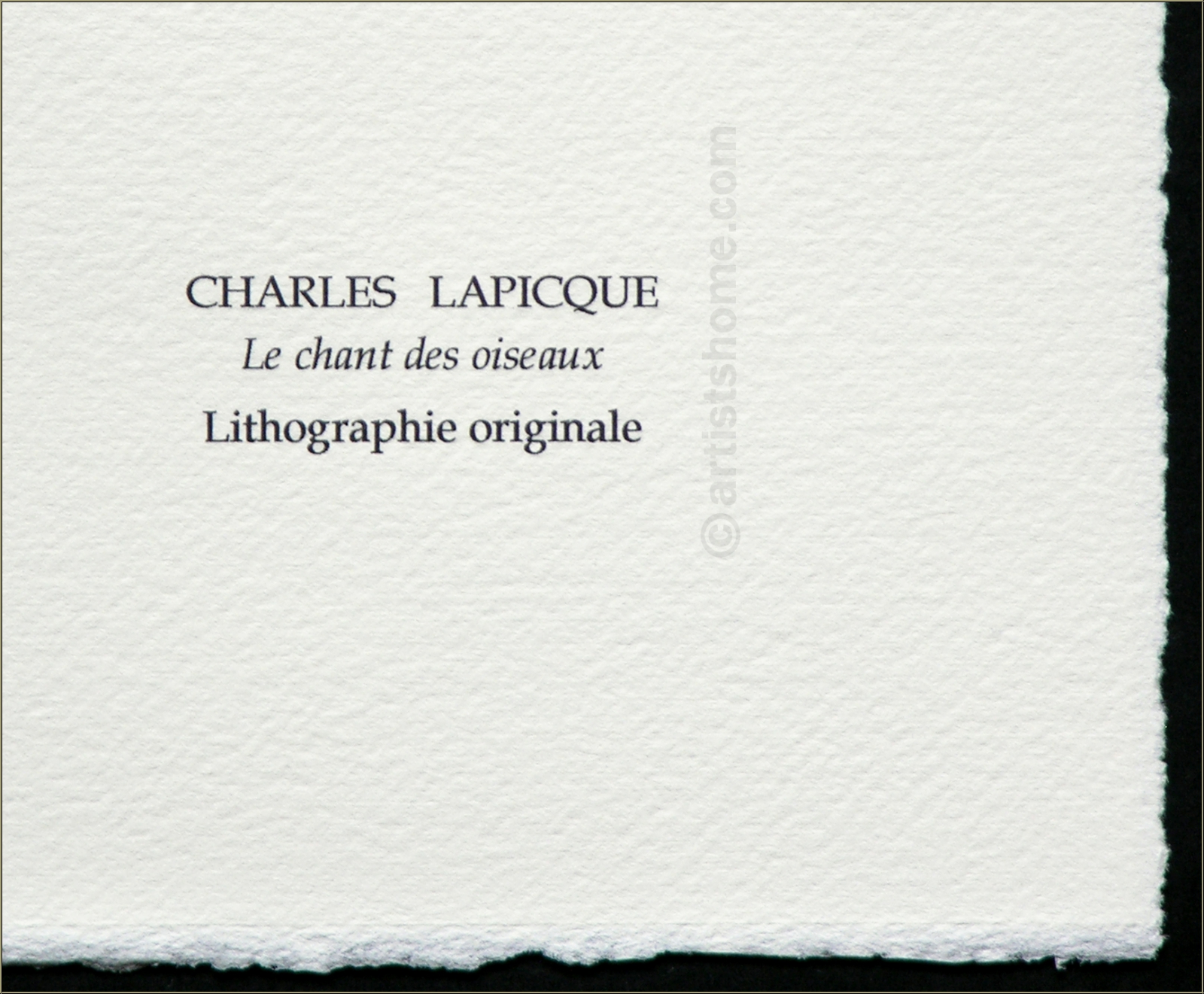 Détails :« Le chant des oiseaux » Un des 800 exemplaires de l'édition limitée sur papier Arches pour « Souvenirs et portraits d'artistes »
