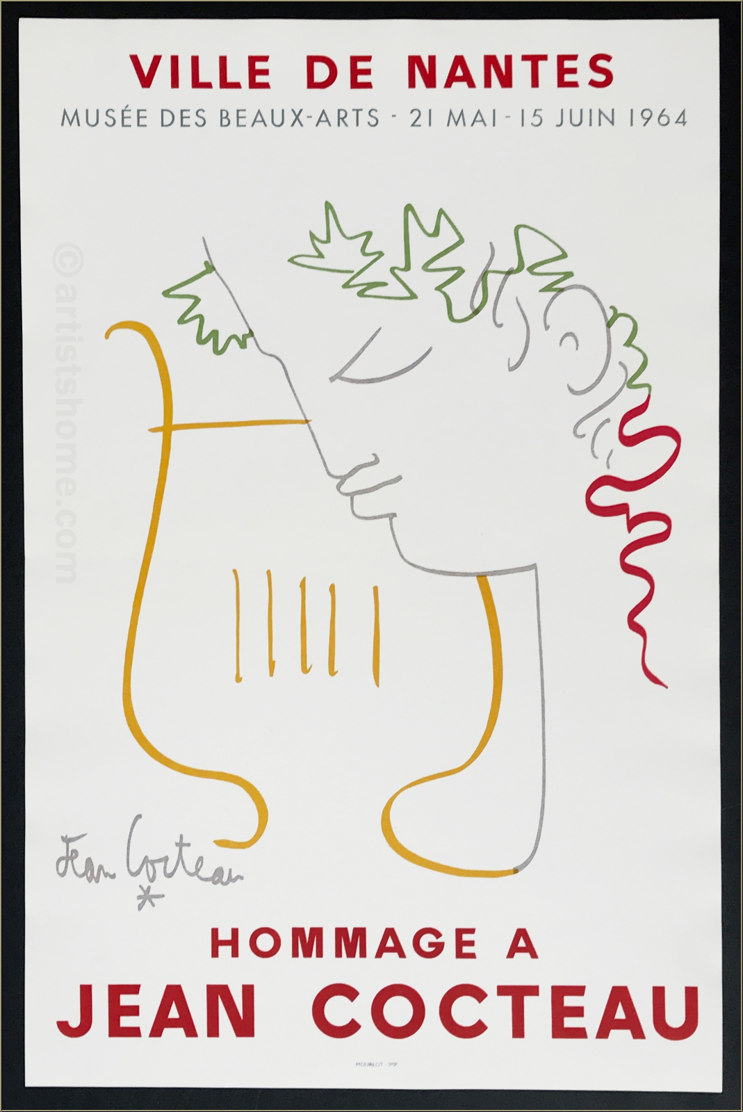 Détails :Hommage à Jean Cocteau, Ville de Nantes, 1964 Affiche originale imprimée en lithographie sur le thème orphique. Éditée à l'occasion de l'exposition rétrospective des oeuvres de Jean Cocteau au Musée des Beaux-Arts de Nantes.
