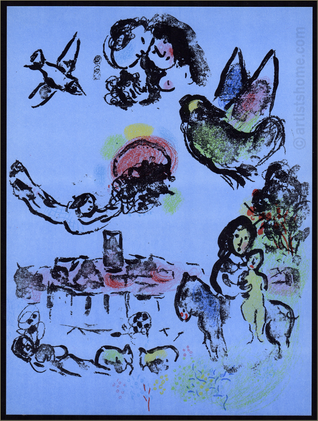 Marc Chagall: « Nocturne à Vence » Lithographie originale 1963 Mourlot