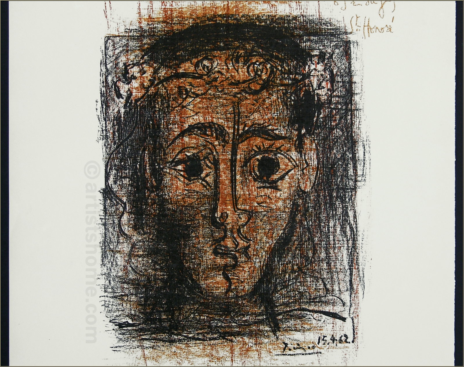 Détails :« Alex Maguy expose 7 Tableaux Majeurs » 1962 Tête de Jaqueline - Affiche originale sur vélin d'Arches, conçu par Picasso lui-même et imprimée par Mourlot.