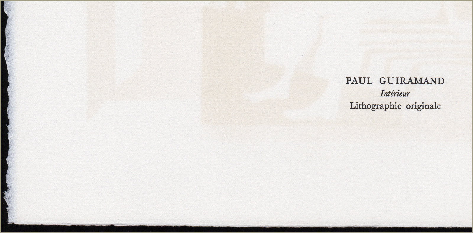 | | « Intérieur » Femme assise dans son lit, 1972 | Artiste : | Paul Guiramand *1926 Saint-Quentin, Frankreich - †2007 France | | Technique : | Lithographie originale en couleurs, imprimée par Mourlot. Texte au verso : « Paul Guiramand - Intérieur - Lithographie originale » Ceci n'est pas une reproduction récente (tirage d'art) qui a été copiée selon des procédés de reproduction photomécanique, mais la lithographie originale de 1972. ATTENTION: il semble actuellement que des impressions d'apparence similaire sont disponibles à la vente sur internet pour de faibles sommes. Il s'agit de réimpressions tardives et non autorisées (des copies pirates). Ces tirages ne sont pas des lithographies originales ! | | Année de réalisation : | 1972 | | Formats : | 32,5 x 25 cm (feuille) | | Tirage | Papier : | Une des 800 épreuves de l'édition limitée sur papier Arches, non signée | | Éditeur : | Alain C. Mazo, Paris u. Léon Amiel, New York, 1972 | | Imprimeur : | Mourlot, Paris | | Référence : | cf. https://mourlot.com « Livres de Fernand Mourlot » Une preuve d'identité de l'œuvre sera fournie (sans prix dans le cas d'un cadeau). | | État : | Details En parfait état de conservation. Cadre non fourni. | Évaluations des clients : Il n'y a pas encore d'evaluations. Seulement les client qui ont acheté cet article et qui sont connecté peuvent l'evaluer. Votre nom est automatiquement affiché de manière anonyme, par ex. « Olivier M., France ».  *Valent pour les livraisons vers l'Allemagne payées via PayPal. En cas de paiement par virement bancaire, la livraison prendra un à trois jours de plus à partir du jour du virement en question. Pour connaître les délais de livraison pour d’autres pays et estimer le jour de livraison, rendez-vous ici |